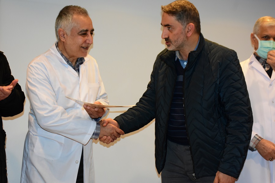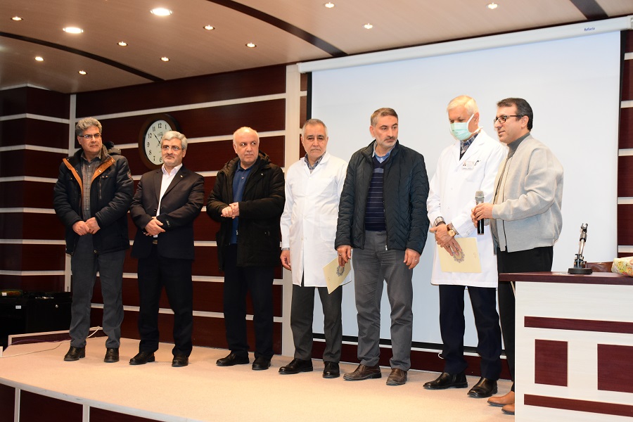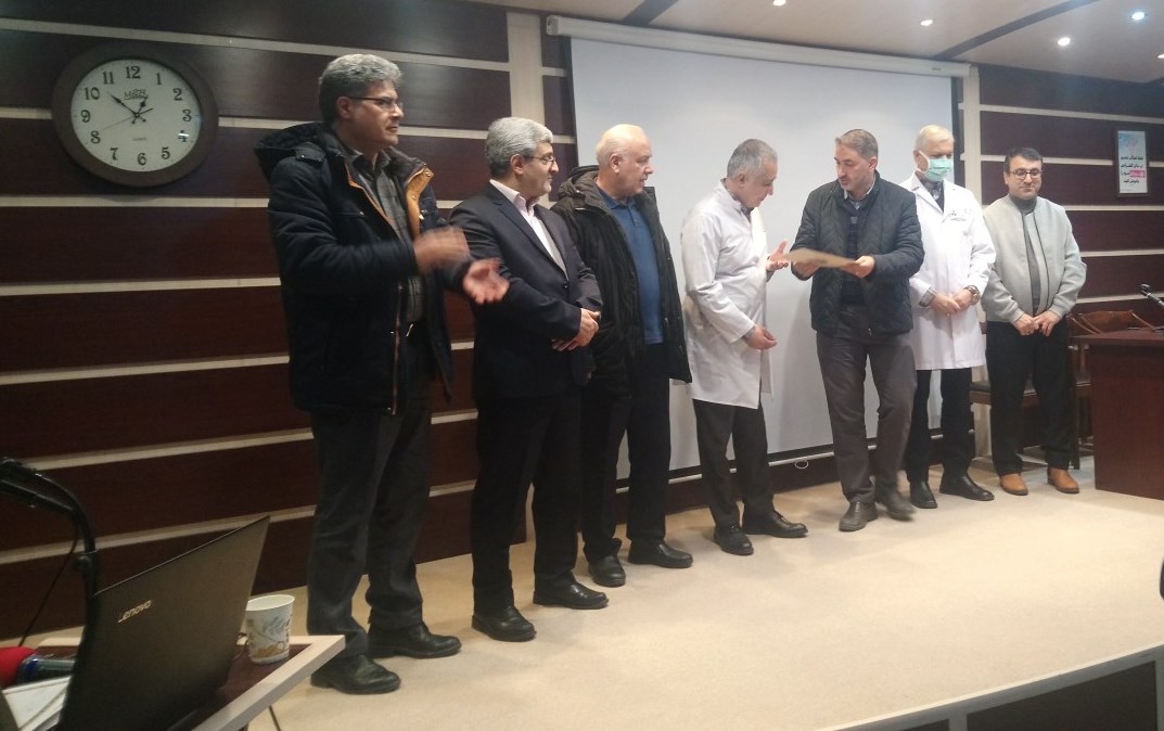 ابلاغ رسمی ریاست بیمارستان با امضای رئیس دانشگاه علوم پزشکی آقای دکتر نقی پور تقدیم آقای دکتر جوادزاده شد و لوح سپاس از طرف رئیس دانشگاه علوم پزشکی به آقای دکتر میرزائی تقدیم شده و از زحمات ایشان قدردانی شد.