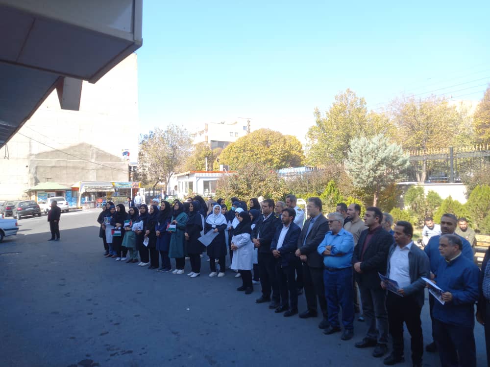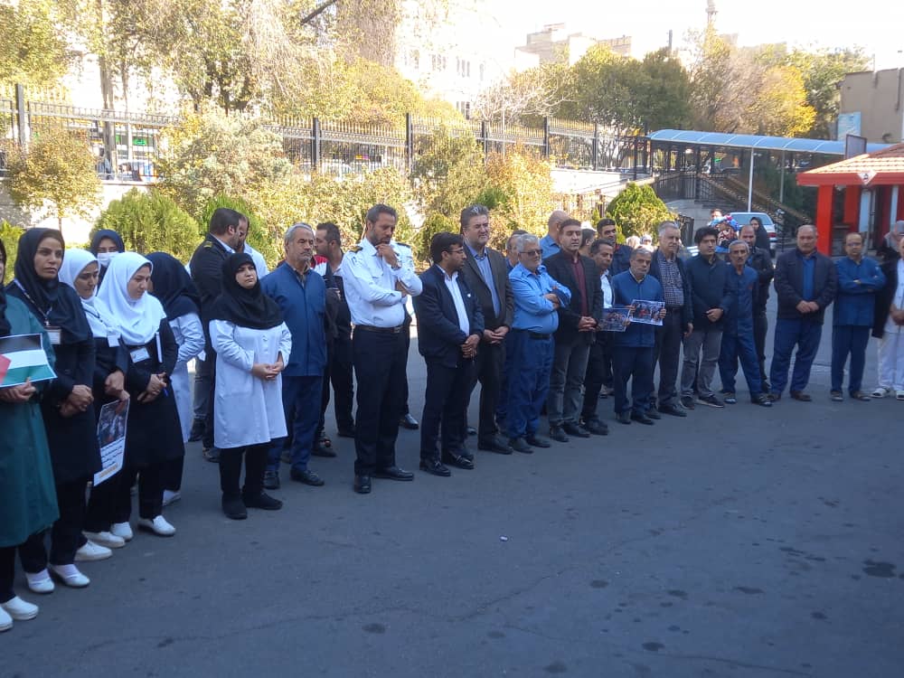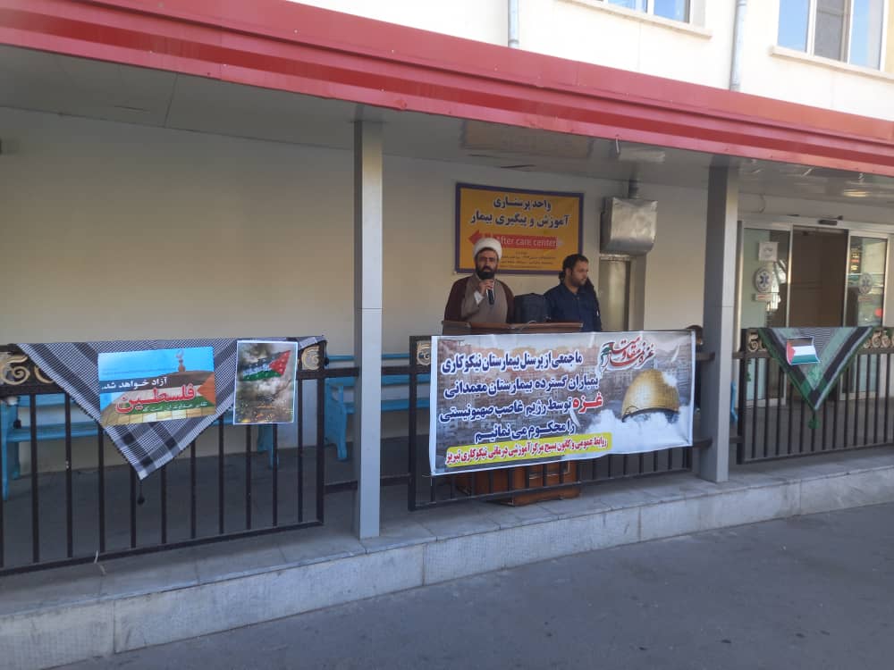 ما جمعی از پرسنل بیمارستان نیکوکاری بمباران گسترده بیمارستان المعمدانی غزه توسط رژیم غاصب صهیونیستی را محکوم می نمائیم. این تجمع با حضور ریاست محترم مرکز جناب آقای دکتر جوادزاده ، مدیر مرکز و جامعه بسیج جامعه پزشکی ساعت 11 روز دوشنبه 22 آبان ماه 1402 با رعایت ادامه خدمات درمانی به بیماران و مراجعین به مرکز برگزار شد.